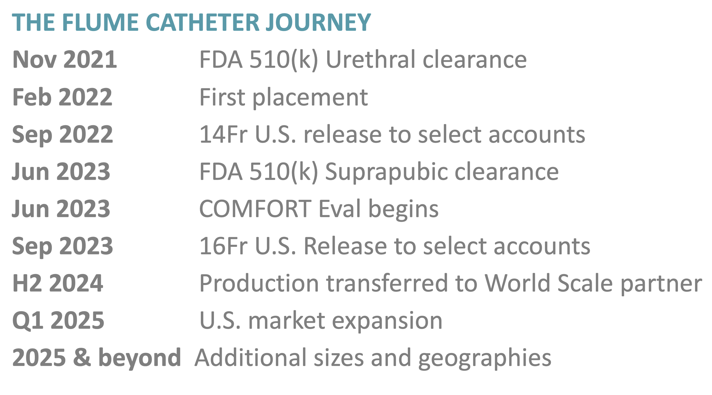The FLUME catheter has FDA 510(k) clearance for both urethral and suprapubic use. If you are a U.S. based clinician and would like to secure samples of the 10ml 16Fr FLUME catheter, please provide details on the link below.